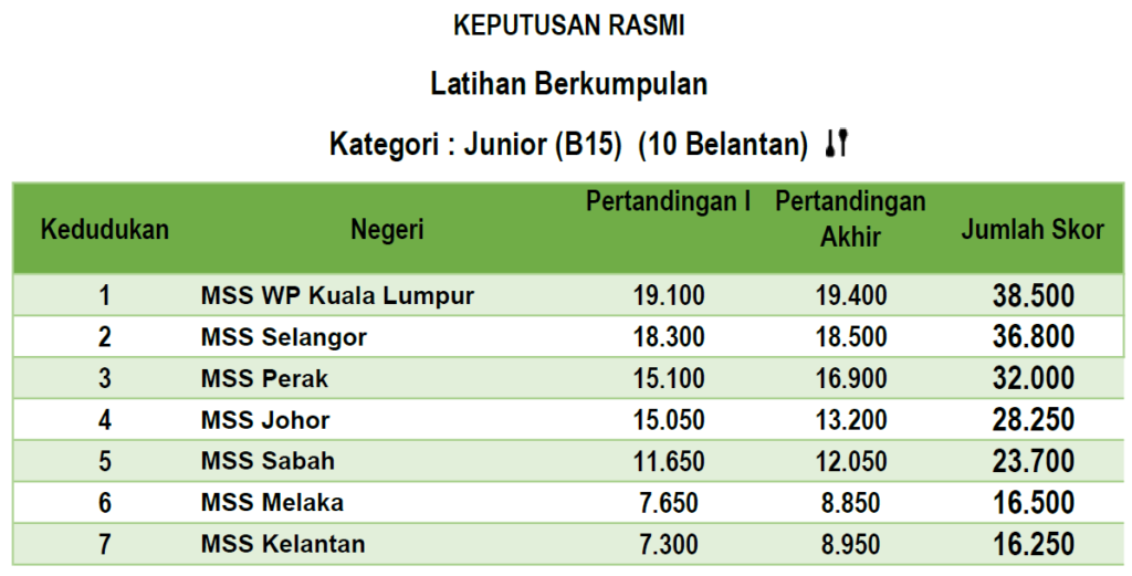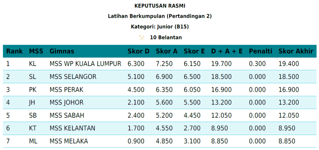 Keputusan Rasmi – Berkumpulan – Pertandingan 2
