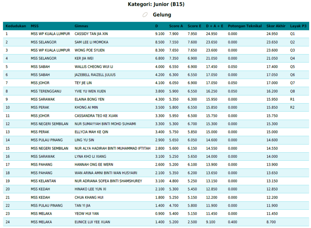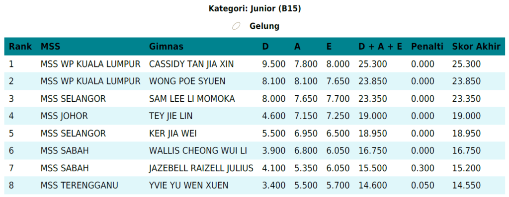 Junior (B15) – Individu Keseluruhan