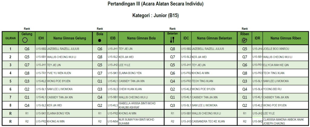 Junior (B15) – Individu Keseluruhan