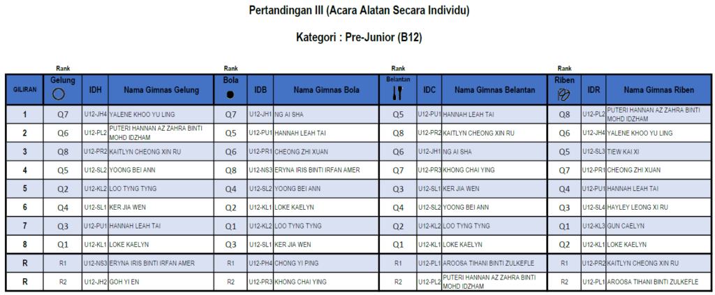 Pre-Junior (B12) – Individu Keseluruhan
