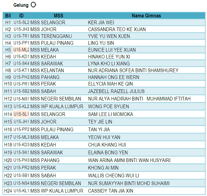 Junior (B15) – Individu Keseluruhan