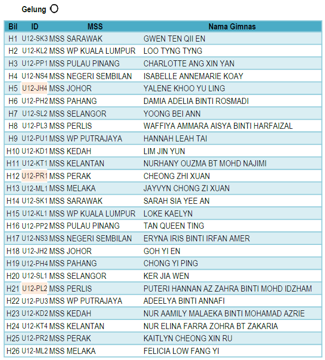 Pre-Junior (B12) – Individu Keseluruhan