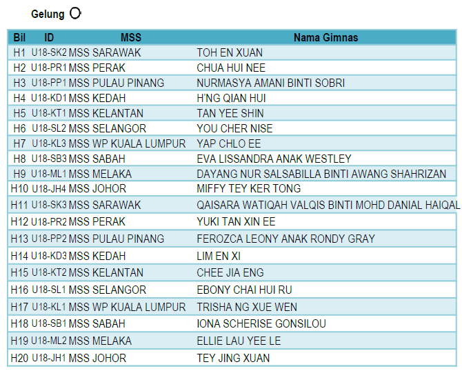 Senior (B18) – Individu Keseluruhan