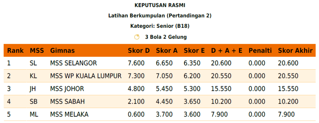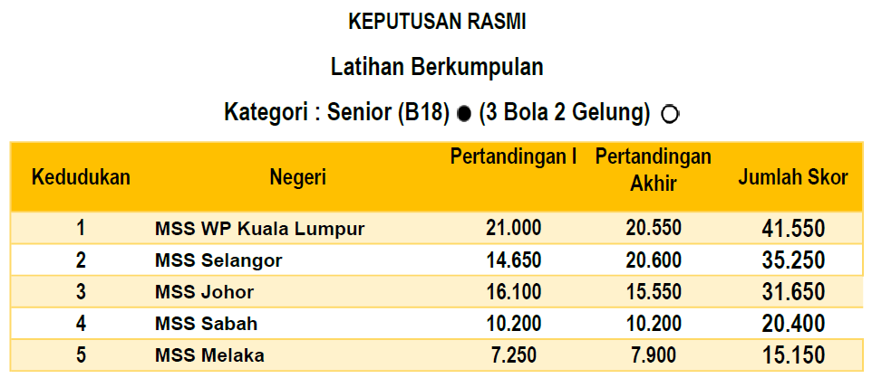 Keputusan Rasmi – Berkumpulan – Pertandingan 2